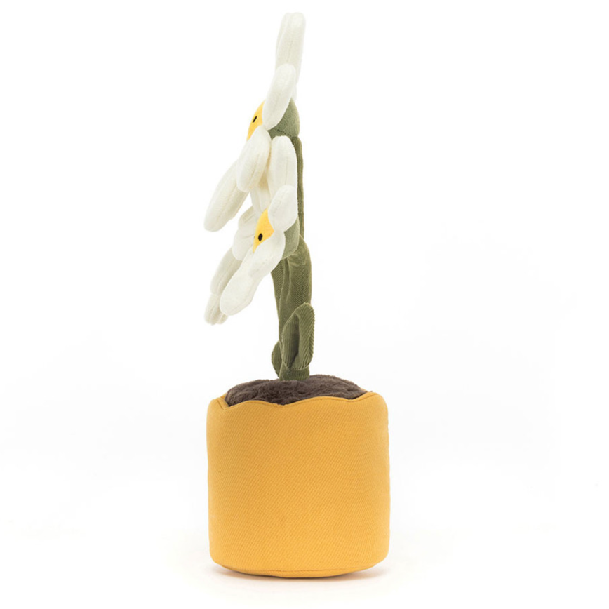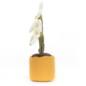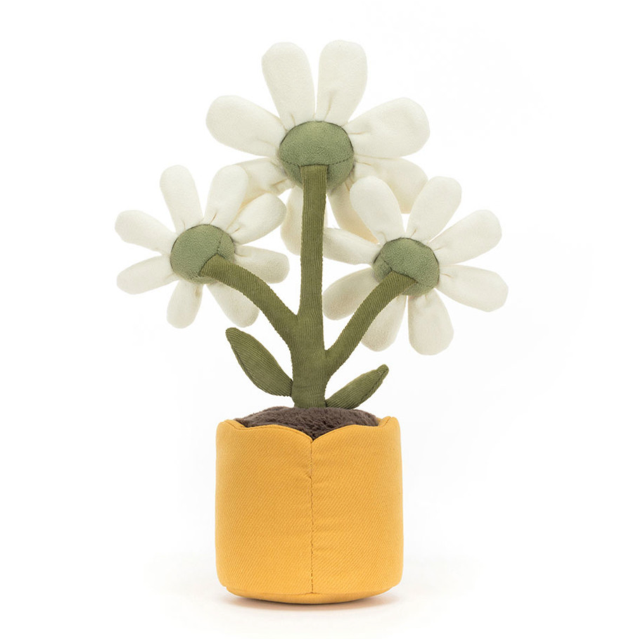 Freshen up your space with Amuseables Daisy! This trio of flowers have golden fur faces, suedette fold petals and deep green stalks. Sat in a beautiful yellow linen pot with mocha soil, these peaceful flowers make chill companions. Age 0+