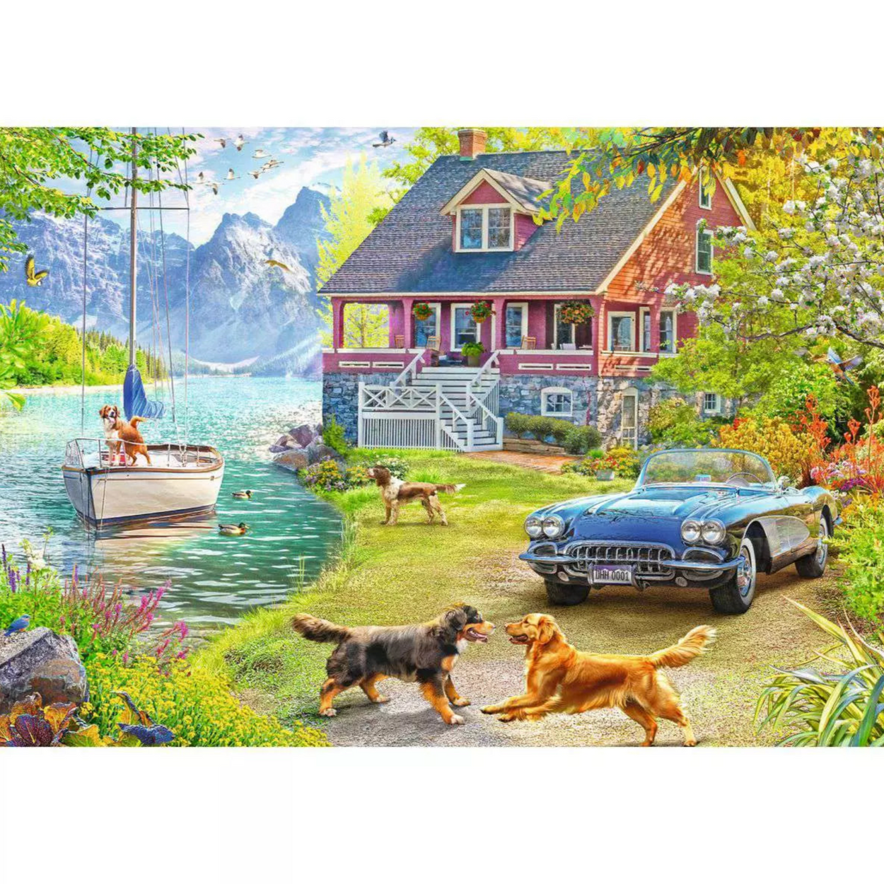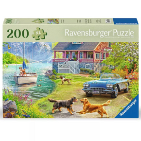 Escape to a serene retreat with this 200-piece extra-large jigsaw puzzle, featuring a picturesque summer lake house surrounded by nature’s beauty. Dogs joyfully play along the shore, while ducks sit peacefully on the sparkling lake. An old classic car is parked nearby, adding a touch of nostalgia to the tranquil setting. With vibrant colours and charming details, this puzzle offers a relaxing and enjoyable experience for puzzle lovers of all ages. The large, easy-to-handle pieces make it perfect for a fun and stress-free assembly.