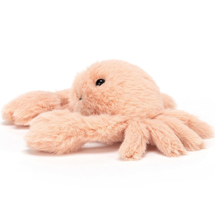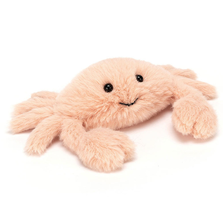 Fluffy Crab is hopping out of the rockpool to wave hello with those soft squidgy claws! This snuggly beach scamp is so, so happy, with a sweet stitchy smile and shiny black eyes. Adorably apricot, this kooky crab is a gorgeously goofy gift. Age 0+