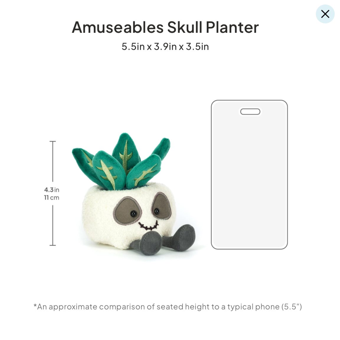 Amuseables Skull Planter is all about good vibes, green shoots, and taking things slow. Stick on a lo-fi playlist and he’ll chill in the corner all night.