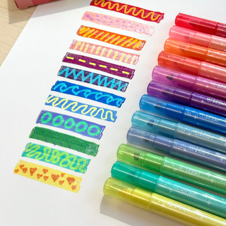 Ideal for detailed designs or big, bold strokes, these coloring markers feature chiseled tips, letting kids easily switch between fine lines and thicker fills. From hidden patterns to bright surprises, these markers are perfect for adding a touch of wonder to every page. Great for coloring books, DIY projects, or school assignments, the Switch-Eroo markers bring creativity to every setting. Whether at home, in the classroom, or on the go, these magical markers keep young artists engaged and inspired!