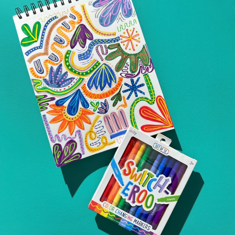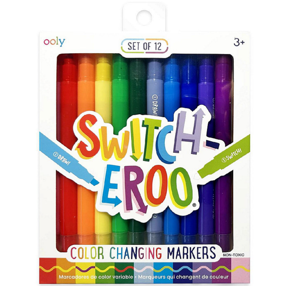 Double the fun and surprise with Switch-Eroo Color Changing Markers! These clever color changing markers aren’t just for adding bold hues—they transform each stroke into a magical, colorful surprise. Each set includes 12 vibrant, double-sided coloring markers, giving young artists a world of color options to explore. Start with the regular tip to fill in colors, then flip to the other side for an instant color change that brings your art to life!