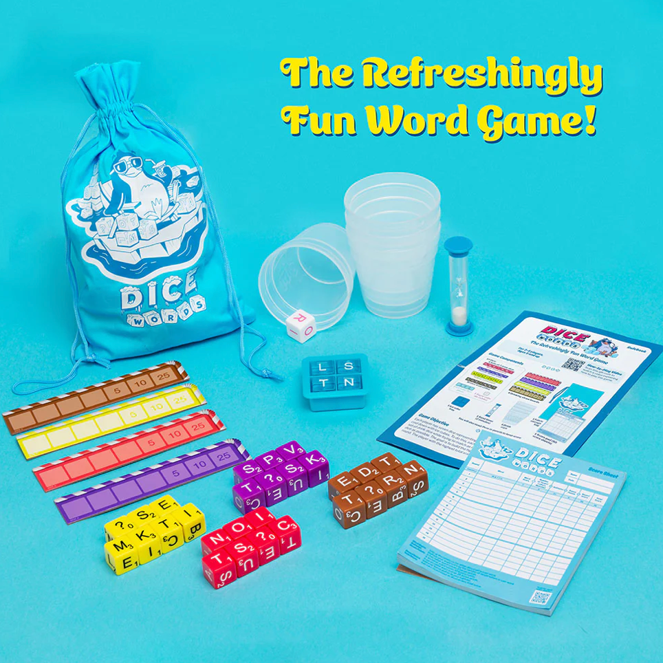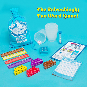 Each player begins by choosing a set of seven letter dice that each represent a different iced beverage. When the timer starts counting down, players attempt to form the longest and most valuable word possible. Don’t have the letters you need? Don’t worry! You can re-roll any of your dice up to two times before the round ends. But, things are not as simple as they seem: in addition to your individual letter dice, you must also try to incorporate the most “target letters” — four ice cube-shaped letter dice that are revealed at the beginning of each round. The colder your drink, the higher your score!