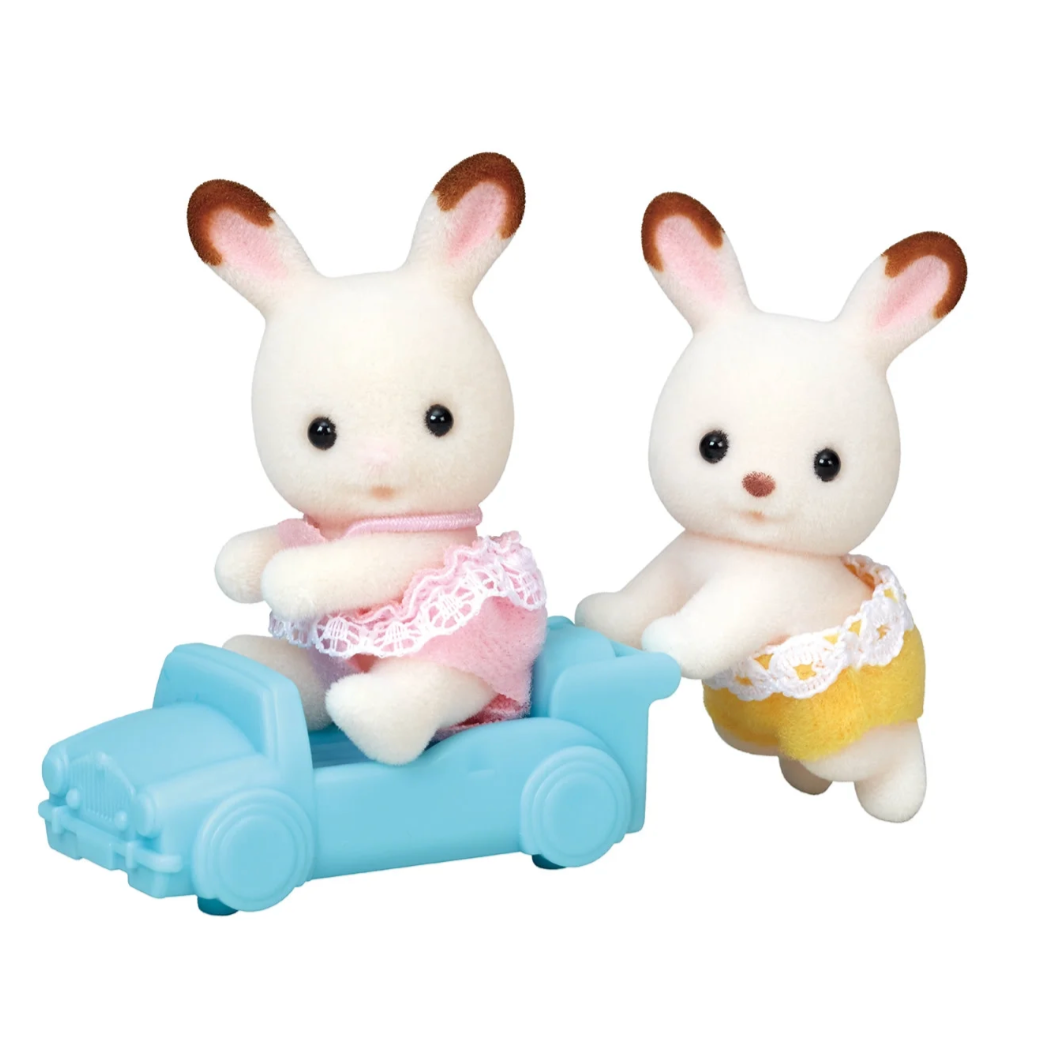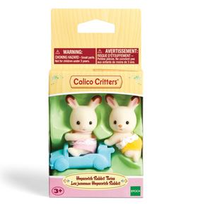 - Includes sitting and crawling twin figures, and pushcart vehicle accessory; Calico Critters families, twins and triplets include flocked figures that are soft to the touch and perfectly miniature for little hands;
