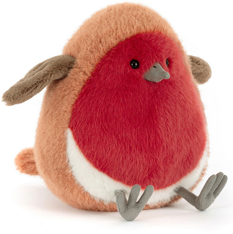 Plum Robin may be built for flight, but when winter comes, she’s strictly ground level. Wings outstretched, tail fluffed, and beak to the sky – she’s happiest making perfect snow angels.