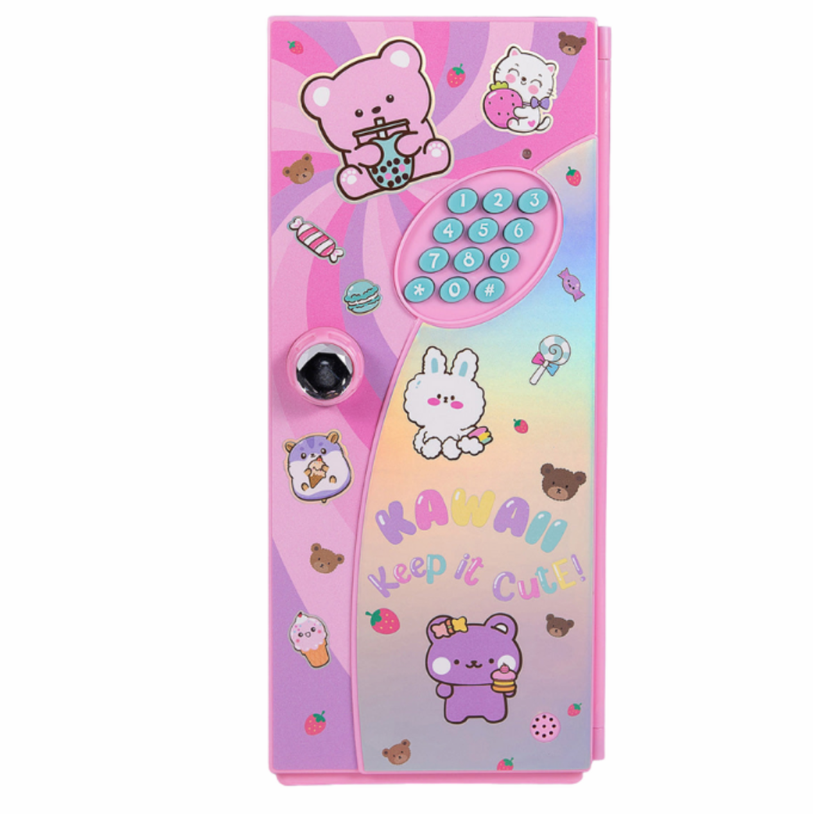 Brighten their day with the Digital Mini Locker, featuring cute critters, sweet treats, sparkling details, and a splash of pink! This playful locker is perfect for keeping treasures safe while adding a fun, glittery touch to any space. Encourage money saving habits: a coin slot drops savings into a removable drawer. Enter a secret PIN to unlock it, which will make magical sound effects! Requires 3 AA batteries, not included.