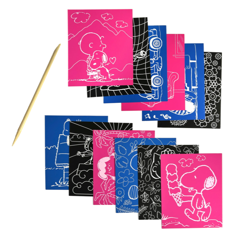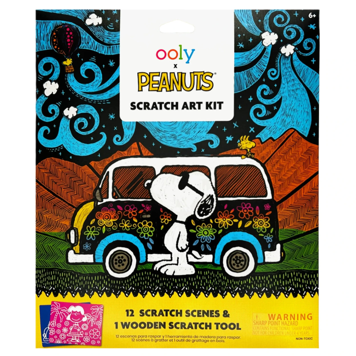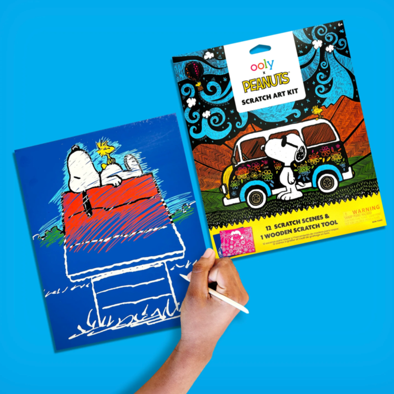 Explore Snoopy’s adventures in vibrant colors with the OOLY x Peanuts Scratch Art Kit! Scratch away the surface to uncover bright Peanuts scenes featuring Snoopy, Woodstock, and the gang. This scratch art for kids comes with 12 scratch cards and a wooden stylus, perfect for kids who love surprises. Whether you’re revealing Snoopy in flight or Charlie Brown at bat, this kit showcases the joy of the Peanuts world with every scratch!