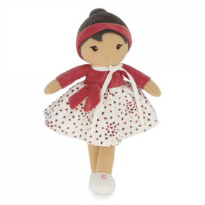 How romantic! Meet Émilie, a charming fabric doll, in her 25 cm format. Suitable for babies from birth, she is part of the Tendresse doll collection by Kaloo. The Émilie doll wears a beautiful ruffled skirt decorated with hearts, reflecting her joy of life and her love of life. With her adorable red heart-shaped wrap, matching her headband, she is ready for any adventure. On her feet, comfortable sneakers allow her to walk the streets and appreciate their authentic beauty. Émilie is a little doll who embodies freedom and who loves to celebrate the beauty of life.