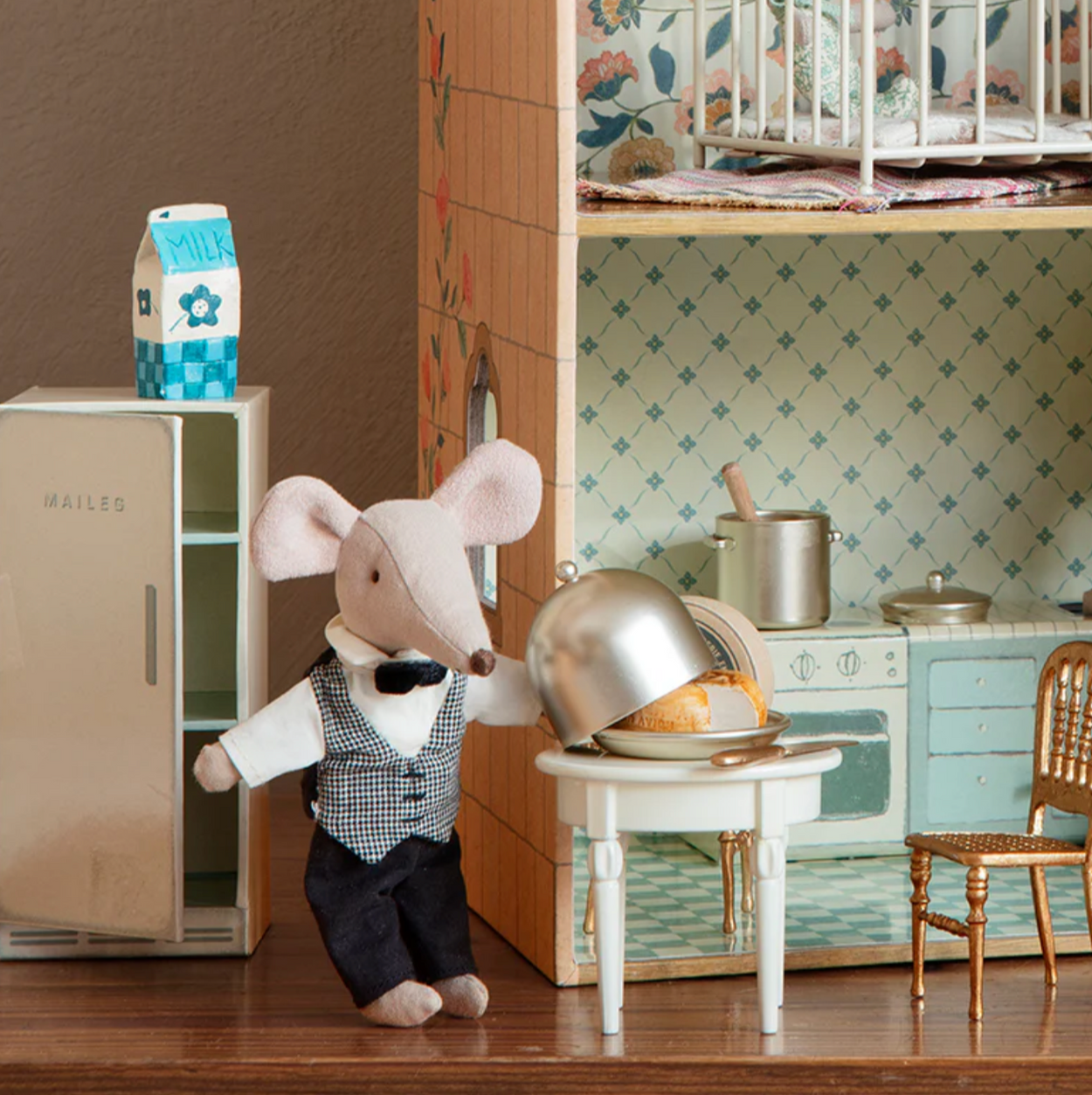 The waiter mouse is the perfect helper at any party or for the royal family anytime. Our Waiter mouse is dressed classically and has magnets in the hands, so it is easier to hold all metal utensils, such as our cheese ball.