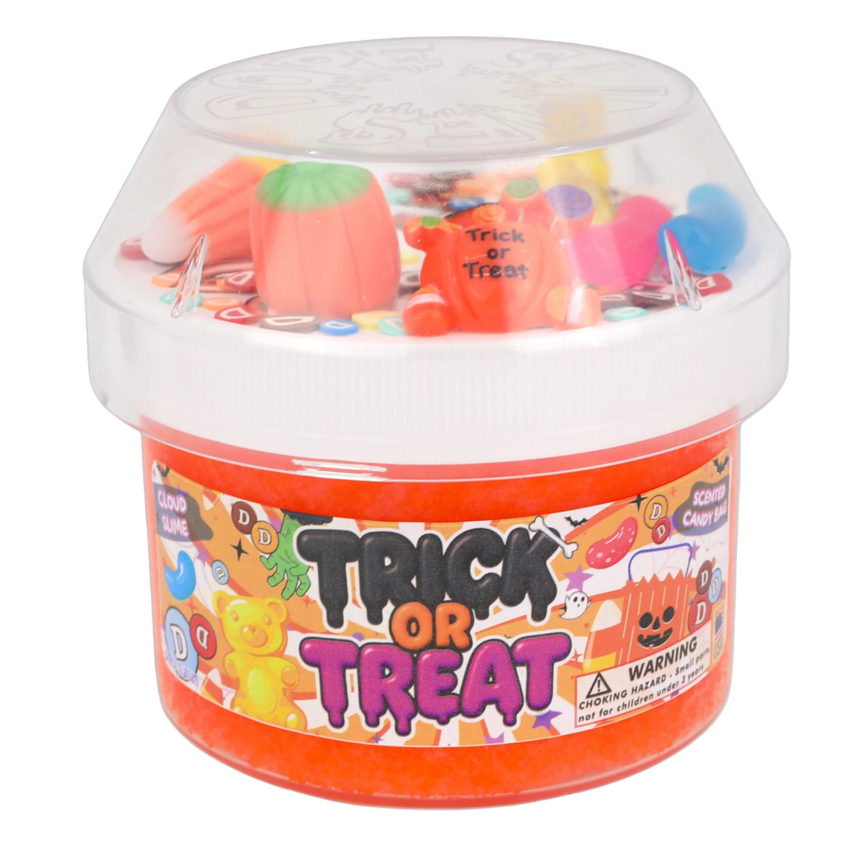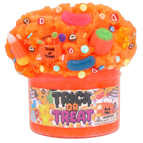 Get ready for spooky fun with our limited-edition Trick or Treat cloud slime! This bright orange slime smells just like a candy bag full of Halloween goodies after a night of trick-or-treating. Its soft, drizzly texture is super satisfying to stretch and drizzle, and includes TONS of candy charms to decorate your slime!