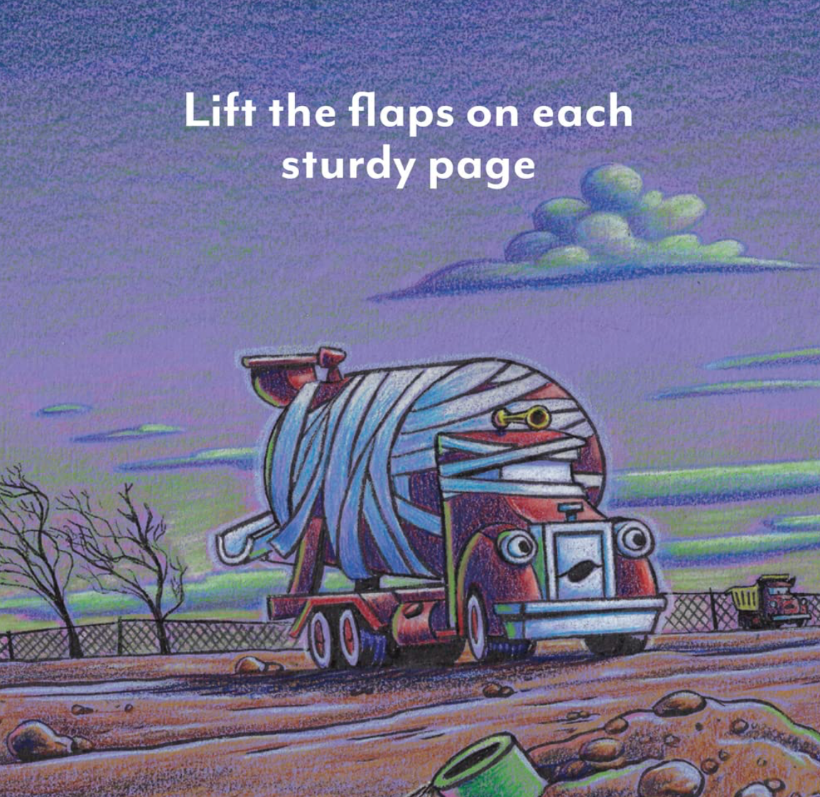 On a dark and windy Halloween night, the trucks are ready for bedtime. But with tricks and treats on their minds, the familiar construction site starts to seem a little eerie! Lift the flaps to turn spooky scares into silly surprises, as the trucks find out that they are all safe and sound—and learn that laughing with friends is the best way to turn fright into fun!