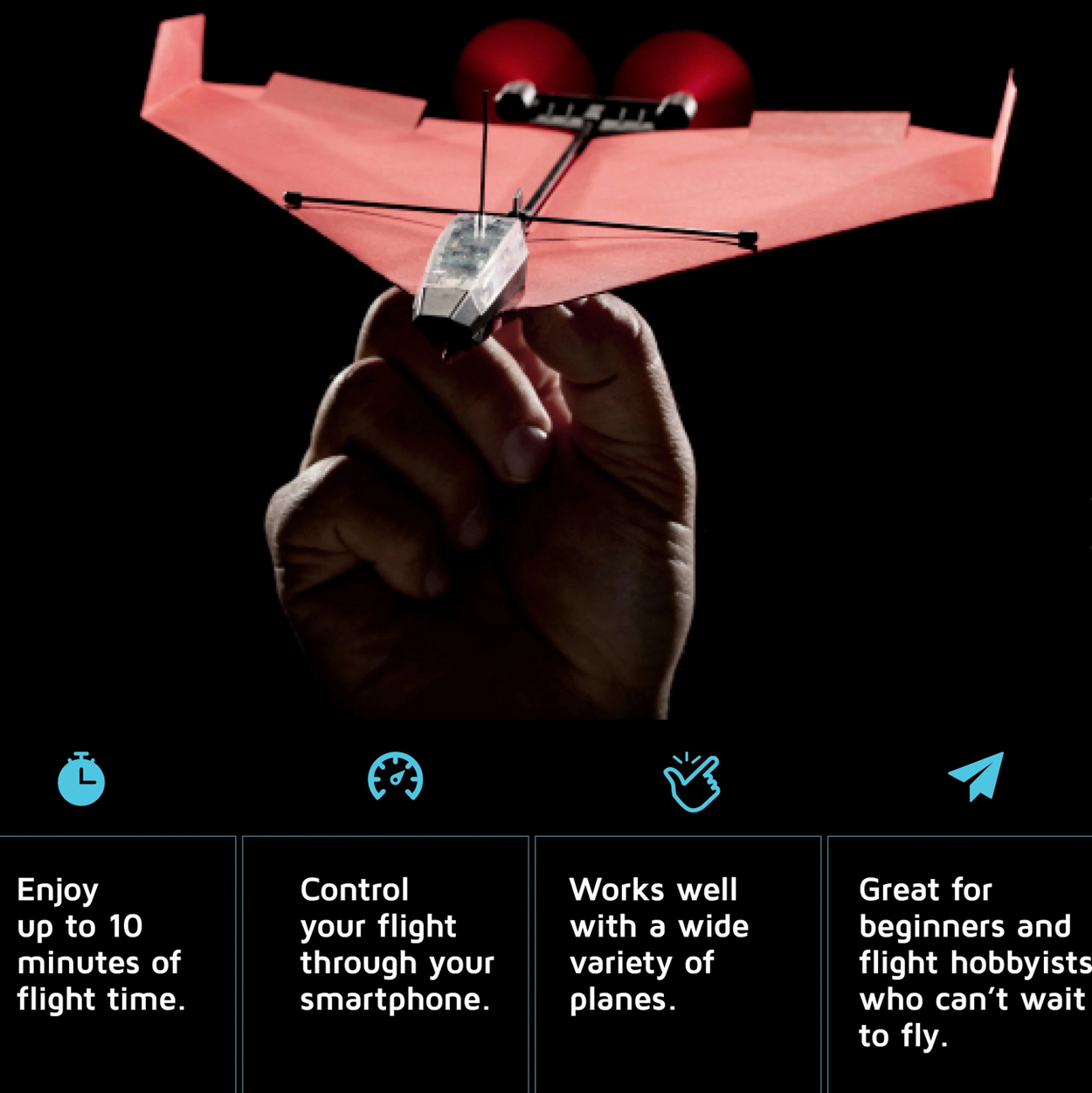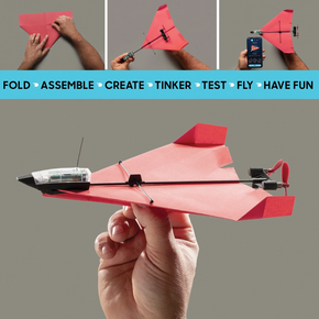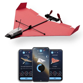 The Next-Generation Smartphone RC Controlled Paper Airplane Kit. Recommended for ages 8+. Available in red and blue.