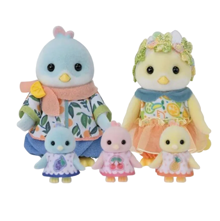 The Citrus Bird family come in vibrant fruit-like colours and have a unique form. The figures are dressed in outfits with lovely fruit designs.The figures' wings can be posed as if they are flapping.The fabric clothing can be removed to change their outfits.