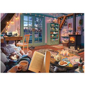 Assemble the oversized easy and cozy up with a book by the fire in this quiet mountain cabin. 500-piece Large Format Puzzles from Ravensburger feature larger pieces with solutions for puzzlers both young and old in mind.